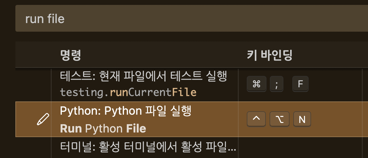 위와 관련하여 단축키가 존재하는 줄 알고 한참 찾았는데 다 안됐다. 혹시나 단축키 설정에 들어가보니 python run file 에 대해서는 지정된 단축키가 없는 것이었다..! 이렇게 헤매는 분 들이 계실까 하여 기록해 둔다. run file 단축키는 가장 유용한 단축키이기 때문이다.